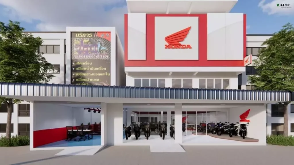การออกแบบโชว์รูมรถจักรยานยนต์นั้นไม่ใช่เรื่องยากอีกต่อไป หากให้เราช่วยดูแลโชว์รูมรถของคุณในการออกแบบ เรามีผลงานการออกแบบโชว์รูมรถจักรยาน HONDA ซึ่งลูกค้าสามารถเข้ามาปรึกษากับทีมออกแบบของเราได้ เรารับงานอย่างครบวงจร